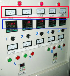 万彩网999794、开关下面为主机电流表(8A) 风机电流表(~2A) 电源电压 副机电流表(~1A) 备用电流表(XXX)