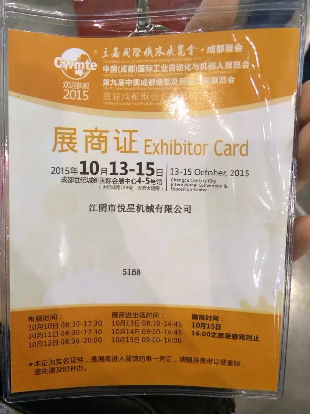 第九届中国成都橡塑及包装工业展览会,时间2015年10月13—15日,地址:成都世纪城新国际会展中心4-5号馆(世纪城路198号,天府大道旁)望新老顾客奔走告知,有兴趣得朋友可以来展会试机。