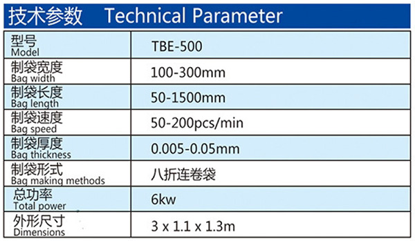 机器特性 此设备为生产连卷八折背心垃圾袋的专用设备,单通道高速无拉伸,操作简便,底封好,收卷整齐,个数准确,手动手卷。此设备采用全钢板一体而成,用电220v照明电即可。