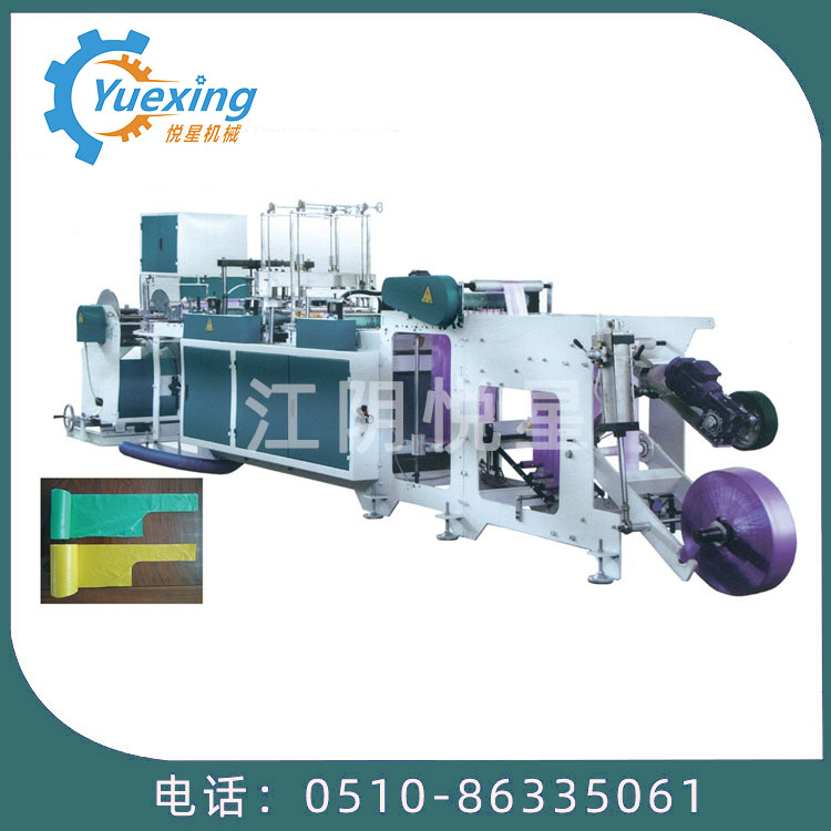 万彩网99979此设备为生产连卷八折背心垃圾袋的专用设备,单通道高速无拉伸,操作简便,底封好,收卷整齐,个数准确,手动手卷。此设备采用全钢板一体而成,用电220v照明电即可。